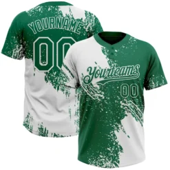 Custom White Kelly Green 3D Pattern Abstract Brush Stroke Two-Button Unisex Softball Jersey
