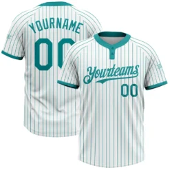 Custom White Teal Pinstripe Teal Two-Button Unisex Softball Jersey