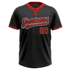 Custom Black Red Two-Button Unisex Softball Jersey