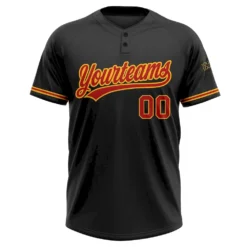 Custom Black Red-Gold Two-Button Unisex Softball Jersey