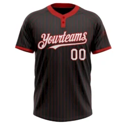 Custom Black Red Pinstripe Red Two-Button Unisex Softball Jersey