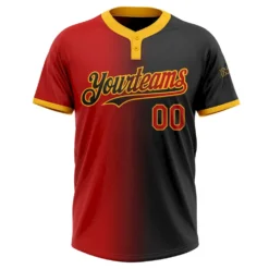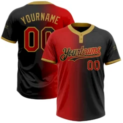 Custom Black Red-Gold Gradient Fashion Two-Button Unisex Softball Jersey