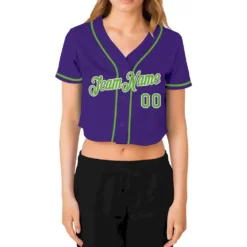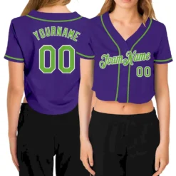 Custom Women’s Purple Kelly Green-White V-Neck Cropped Baseball Jersey