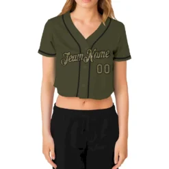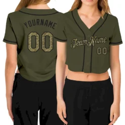 Custom Women’s Olive Camo-Black Salute To Service V-Neck Cropped Baseball Jersey