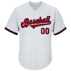 Custom White Red-Navy Authentic Throwback Rib-Knit Baseball Jersey Shirt