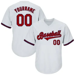 Custom White Red-Navy Two-Button Unisex Softball Jersey