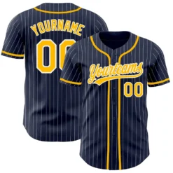 Custom Navy White Pinstripe Gold Authentic Baseball Jersey
