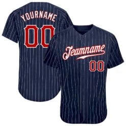 Custom Navy White Pinstripe Red-White Authentic Baseball Jersey