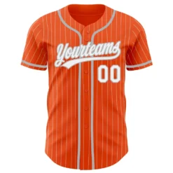 Custom Orange White Pinstripe Gray Authentic Baseball Jersey