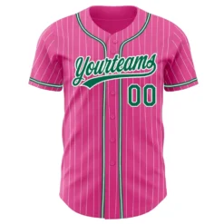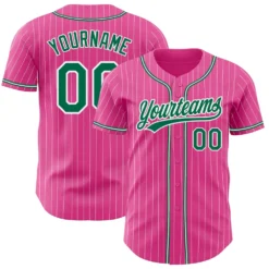 Custom Pink White Pinstripe Kelly Green Authentic Baseball Jersey
