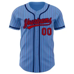 Custom Powder Blue Red Pinstripe Navy Authentic Baseball Jersey