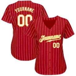Custom Red Gold Pinstripe White-Gold Authentic Baseball Jersey