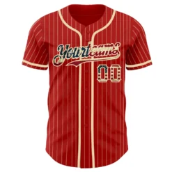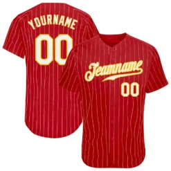 Custom Red White Pinstripe Old Gold Authentic Baseball Jersey