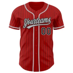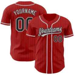Custom Red Black Pinstripe Gray Authentic Baseball Jersey