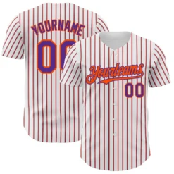 Custom White (Purple Orange Pinstripe) Purple-Orange Authentic Baseball Jersey