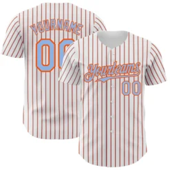 Custom White (Light Blue Orange Pinstripe) Light Blue-Orange Authentic Baseball Jersey