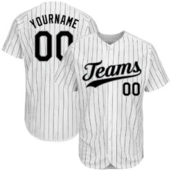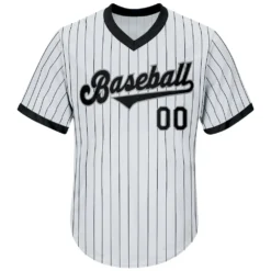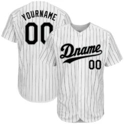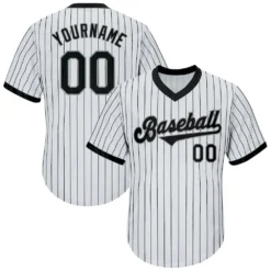 Custom White Black Pinstripe Black-Gray Baseball Jersey