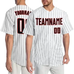 Custom White Black Pinstripe Black-Red Authentic Baseball Jersey