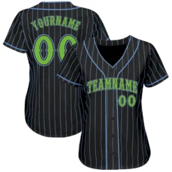 Custom Black Light Blue Pinstripe Neon Green Authentic Baseball Jersey