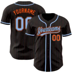 Custom Black Orange Pinstripe Light Blue Authentic Baseball Jersey