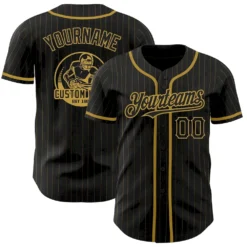Custom Black Old Gold Pinstripe Black Authentic Baseball Jersey