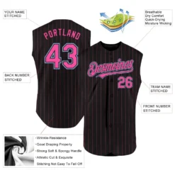 Custom Black Light Blue Pinstripe Pink Authentic Sleeveless Baseball Jersey