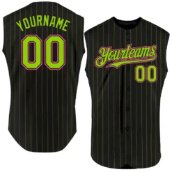 Custom Black Neon Green Pinstripe Pink Authentic Sleeveless Baseball Jersey