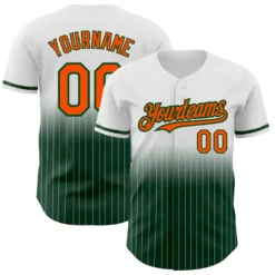 Custom White Pinstripe Green-Orange Authentic Fade Fashion Baseball Jersey