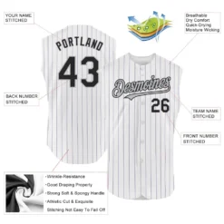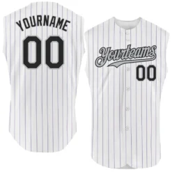 Custom White Purple Pinstripe Black-Gray Authentic Sleeveless Baseball Jersey