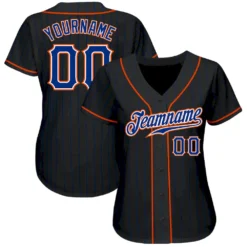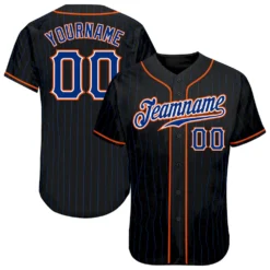 Custom Black Royal Pinstripe Royal-Orange Authentic Baseball Jersey