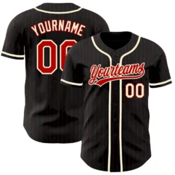 Custom Black Red Pinstripe Red-Cream Authentic Baseball Jersey