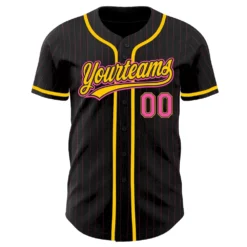 Custom Black Pink Pinstripe Pink-Yellow Authentic Baseball Jersey