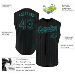 Custom Black Teal Pinstripe Teal Authentic Sleeveless Baseball Jersey