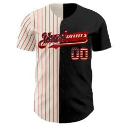 Custom Black Vintage USA Flag Cream-Red Pinstripe Authentic Split Fashion Baseball Jersey