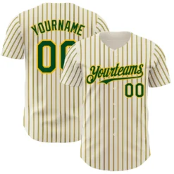 Custom Cream (Green Gold Pinstripe) Green-Gold Authentic Baseball Jersey