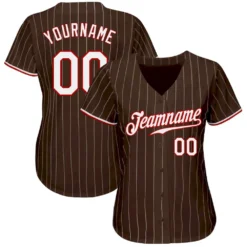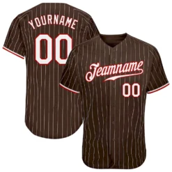 Custom Brown White Pinstripe White-Red Authentic Baseball Jersey