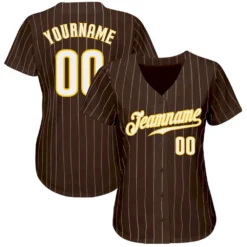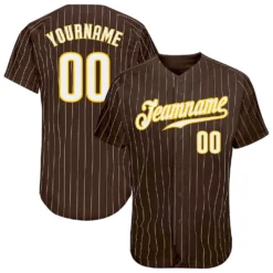 Custom Brown White Pinstripe White-Gold Authentic Baseball Jersey