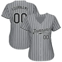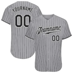 Custom Gray Black Pinstripe Black-White Authentic Baseball Jersey