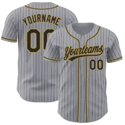 Custom Gray Black Pinstripe Black-Old Gold Authentic Baseball Jersey