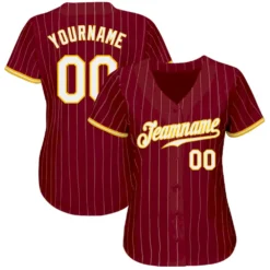 Custom Crimson White-Old Gold Pinstripe Authentic Split Fashion Baseball Jersey