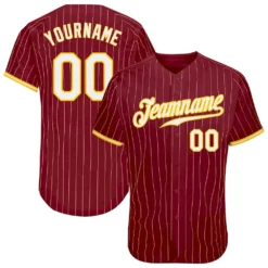 Custom Crimson Cream Pinstripe Gold-White Authentic Baseball Jersey