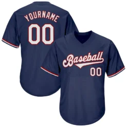Custom Navy White-Red Authentic Throwback Rib-Knit Baseball Jersey Shirt