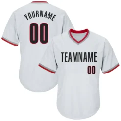 Custom White Black-Red Authentic Throwback Rib-Knit Baseball Jersey Shirt