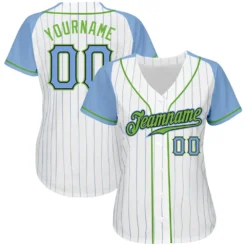 Custom White Light Blue Pinstripe Green-Light Blue Authentic Raglan Sleeves Baseball Jersey