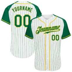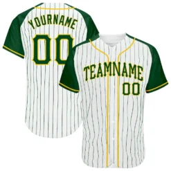 Custom White Green Pinstripe Green-Gold Authentic Raglan Sleeves Baseball Jersey