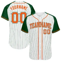 Custom White Green Pinstripe Orange-Green Authentic Raglan Sleeves Baseball Jersey
