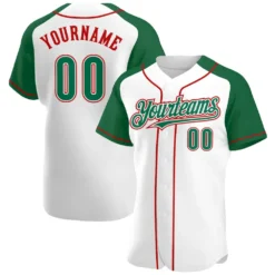 Custom White Kelly Green-Red Authentic Raglan Sleeves Baseball Jersey