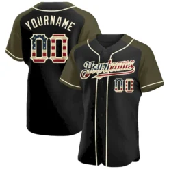 Custom Black Vintage USA Flag Olive-Cream Authentic Raglan Sleeves Baseball Jersey