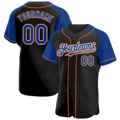 Custom Black Royal-Orange Authentic Raglan Sleeves Baseball Jersey