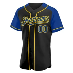 Custom Black Royal-Yellow Authentic Raglan Sleeves Baseball Jersey
